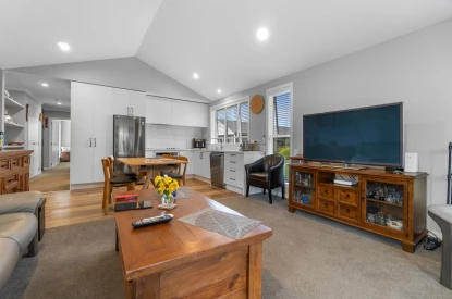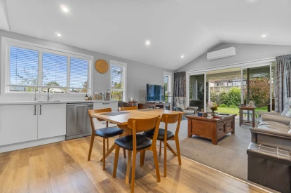 This thoughtfully designed, stand-alone villa boasts spacious open-plan living and striking raked ceilings that enhance the sense of light and space.