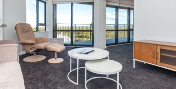 There are two types of homes: apartments and garden villas. All apartments are located within three-story apartment blocks boasting beautiful views towards the sea and surrounding mountain ranges. Apartments come in both one and two bedroom layouts with a private balcony. All garden villas are north facing with two bedrooms, a well-appointed kitchen, open plan living, a private patio, a non-slip bathroom, and an internal access single garage. Some villas also come with a den.