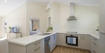 Each two-bedroom villa features a modern kitchen, spacious bathroom with easy-access shower, generous storage space and internal-access garage. Enjoy the summer sun out on the patio or stay cool inside with a heat pump/air conditioning.