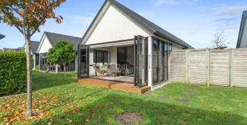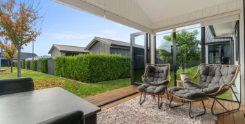 This road-frontage home offers privacy and convenience with its entrance located outside the village gates. Step inside to a sleek, modern kitchen with quality appliances, flowing effortlessly into a spacious open-plan living and dining area. The raked ceilings enhance the sense of space and light, while the enclosed deck provides a comfortable setting for year-round relaxation.