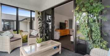 The large modern kitchen and living area flow seamlessly through large doors to a fully glassed-in deck, providing an inviting extension of your living space and the versatility to enjoy in any season. Inside, comfort is ensured with a heat pump and radiator heaters. The generous master suite features a walk-in wardrobe and modern ensuite. A second bedroom and well-appointed bathroom provide perfect additional space, or as an option for guests. Enjoy the practical additions of fly screens, a security door, and a dedicated utility area. With stylish finishes throughout, this home delivers relaxed, refined living.