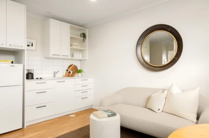 These mobility-friendly homes offer light and spacious open plan living, a kitchenette and a large ensuite. And if your needs change, our serviced apartments will also offer, rest home level care. (Care is subject to availability and eligibility criteria).