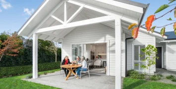 Built on the grounds of a 100-year-old orchard in the Wairarapa, Greytown Orchards is designed with both modern and historic charm. Outwardly the villas reflect the village’s orchard legacy and historic homes around the area, with weatherboard cladding, high stud ceilings and covered patios. But the low-impact materials and modern conveniences make them warm and easy to live in.